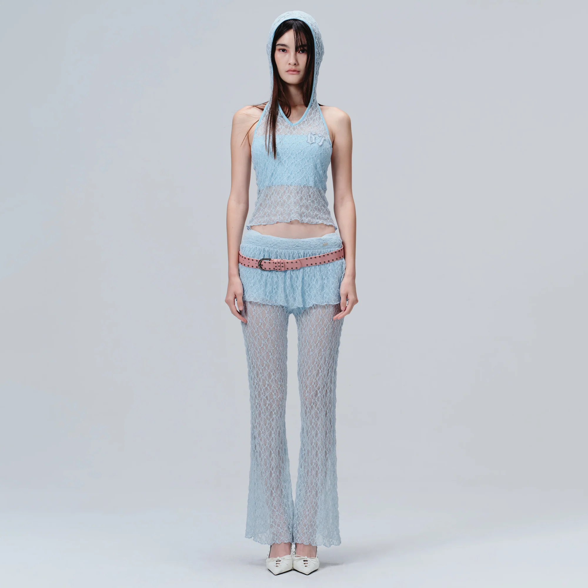 当日着用したのは、繊細なレース素材が印象的なリリースレースフーディーとリリスレースパンツ。